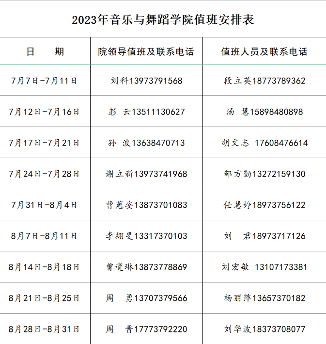 2023年伟德国际1946暑期值班表