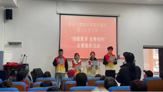 “五星红旗迎风飘扬,胜利歌声多么响亮;歌唱我们亲爱的祖国,从今走向繁荣富强……”11月26日上午,慧泽园小区老年活动中心传来高亢嘹亮的歌声,这是伟德国际1946联合离退休工作处开展“情暖慧泽音舞相伴”志愿服务活动。羊舞岭社区党总支负责人、公司部分离退休老同志、伟德国际1946师生志愿者参加了此次活动。