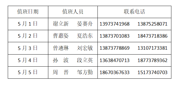 伟德国际19462025年五一假期值班表