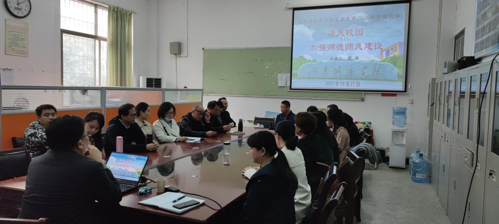 音乐学系、环境设计系把师德师风教育内容融入党课,周勇经理、谢立新书记带头主讲党课,谢书记结合当前正在开展的“清风校园”廉洁文化活动月,向老师们介绍了发生在身边的违反师德师风的事例,以案解读规则,开展警示教育;美术学系、音乐与舞蹈表演系、视觉传达系把师德师风的理论学习与教研活动结合起来,重点讨论如何提高教学质量,如何开展课堂思政,如何把公司产品延伸到课堂之外;辅导员和行管人员在郑学达副书记的组织下,重点就服务育人开展研讨。
