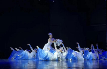 “欲把西湖比西子,淡妆浓抹总相宜” 这是苏轼饮酒未尽,饱览西湖上晴与雨两种截然不同的风光,赞叹而道之词。他把西湖比作西子,空蒙山色是她淡雅的妆饰,潋滟水光是她浓艳的粉脂。正如舞蹈《西子湖·初妆》,是朦胧烟雨中的山水,是破晓远天外的虹霓。云雾弥漫,似有若无。