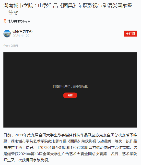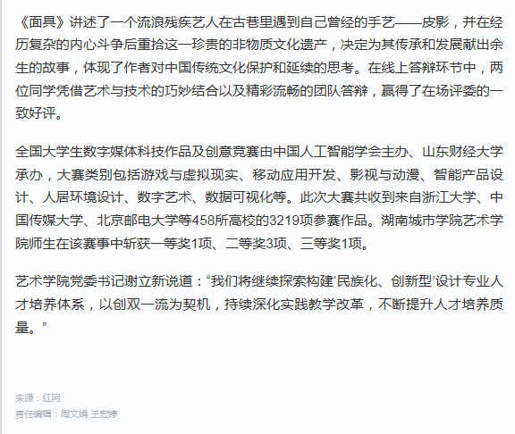 学习强国|伟德国际1946集团:电影作品《面具》荣获影视与动漫类国家级一等奖