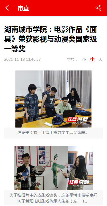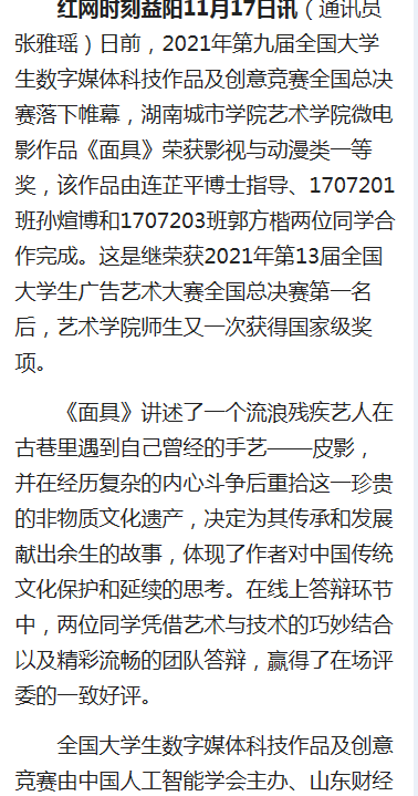 红网|伟德国际1946集团:电影作品《面具》荣获影视与动漫类国家级一等奖