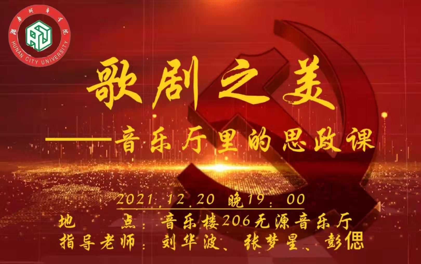 2021年12月20日晚上7点,艺术公司民族歌剧实训队、西洋歌剧实训队以及民歌情景剧实训队联合举办了“歌剧之美——音乐厅里的思政课”歌剧展演音乐会,音乐会由刘华波、彭偲、张梦星三位老师共同指导,主持人由实训队队长吕耕圆、周慧婷、陈庆担任。艺术公司经理周勇、音乐表演与舞蹈系主任汤慧、声乐教研室牟华副教授莅临现场。