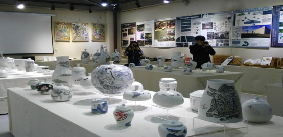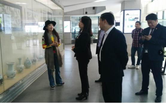 省团委领导在一楼大厅对羊舞岭古窑的发展历史、陶瓷特点及出土部分陶瓷文物有个初步的了解,对公司的校企合作研发基地及陶瓷烧制室进行了考察,在二楼对湖湘文化展厅进行参观。欣赏着美丽的陶瓷艺术作品和传承下来的千年出土文物,聆听着传承人的介绍。造型古朴、温润而又厚重,且胚体朴拙,并与绘画语言完美结合的羊舞岭瓷器或陶缽,以其独特的艺术魅力,深深吸引着领导专家们驻足欣赏,并对艺术公司校企合作基地给予了较高的评价。