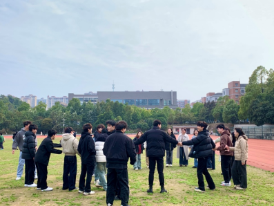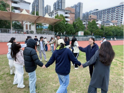活动内容由朋辈辅导员马嘉倩、杨崇艺创新设计,五个环节层层递进,以班级为单位分批进行。“动作接龙”激发团队默契,“心有千千结”隐喻矛盾化解智慧,“信任盲行”强化人际托付,“歌词接龙”引发情感共振,“007”游戏释放青春活力。参与者既能感受“团结协作破局”的哲理,又在“盲行”中体会依赖带来的安全感。“原以为这只是普通的游戏,但没想到让我真实触摸到了班级的温度。”活动后的2416301高明明员工感言印证教育成效。