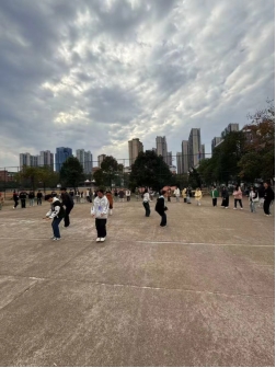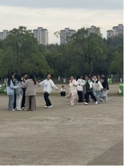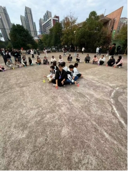 活动共设置八轮音乐游戏环节。开场游戏《你好你好》以欢快旋律带领大家跟随工作人员动作互动,迅速点燃了现场氛围,拉近了彼此距离。随后,《喊数抱团》让参与者在音乐中围圈律动,根据数字迅速抱团,淘汰者也笑容洋溢,现场气氛紧张而欢乐。《跳拍律动》中大家舒展双臂、随节奏摆动,展现出良好的协调能力;《节奏拍打》环节,参与者手持杯棍,走停之间敲击出清脆节奏,与音乐融为一体。《听到长音不许动》考验专注与反应,长音响起时全场定格,妙趣横生。《越来越快》则将气氛推向高潮,随着节奏不断加快,挑战着参与者的默契与速度。《你笑起来真好看》以杯子为媒,配合音乐动作传递欢乐。最后,全体在《爱我中华》手势舞中整齐舞动,以饱满姿态表达爱国情怀,活动圆满落幕。现场参与的刘沅平分享道:“在节奏中完全放松了自己,平时学习的压力一下子释放了,没想到音乐游戏这么有感染力,感觉整个人都被治愈了。”