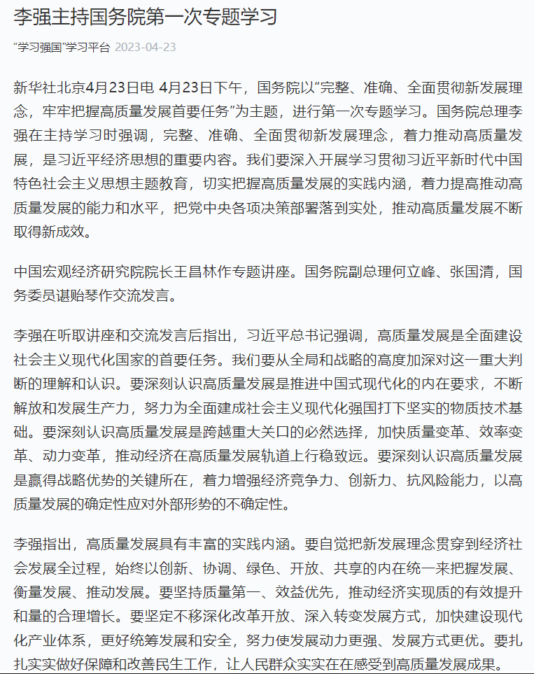 李强主持国务院第一次专题学习