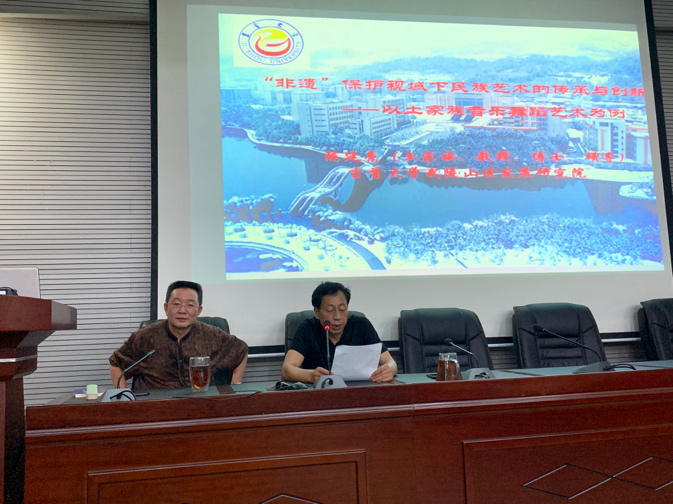 6月28日上午10:00,应公司邀请,吉首大学陈廷亮教授为艺术公司/国际教育公司作了题为“非遗.保护视域下的少数民族艺术的传承与创新——以土家族民间艺术为例”的学术报告。此次报告为湖湘传统美术研究基地科普活动系列讲座,国际教育公司经理龙湘平教授主持了讲座,艺术公司/国际教育公司老师和员工聆听了此次报告。