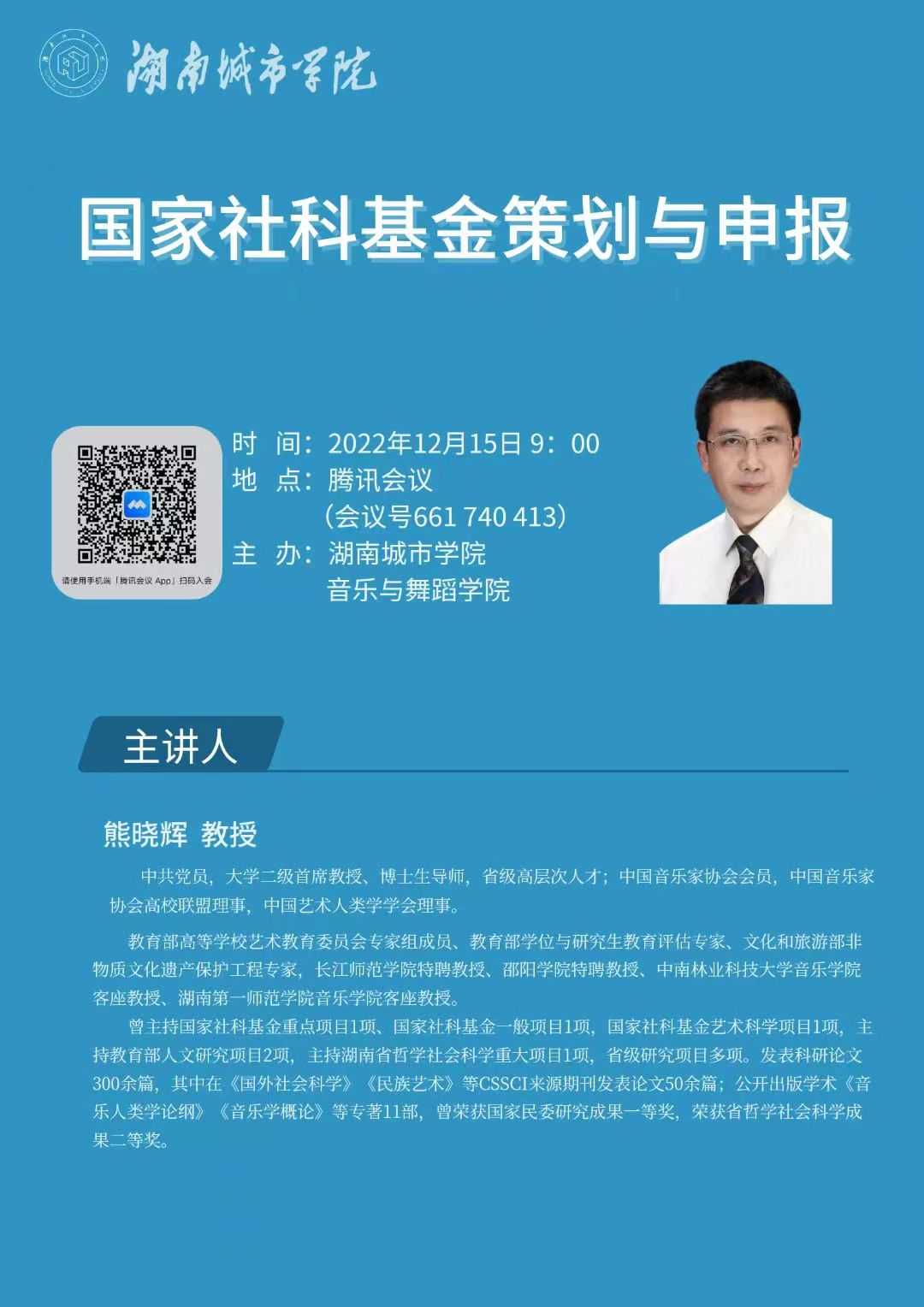 为进一步切实提高公司国家社科基金申报质量,提升公司教师科研能力,按照《伟德国际1946集团2023年度国家社科基金/教育部人文社科项目申报工作方案》安排,12月15日上午9点,在公司科研处指导下,音乐与舞蹈公司邀请湖南科技大学二级教授熊晓辉为公司教师作了《国家社科基金项目策划与申报》的专题讲座,并对公司预申报项目进行了较为详细深入的论证。会议由公司副经理曹蕙姿主持,公司60余名教师通过腾讯会议在线参加。