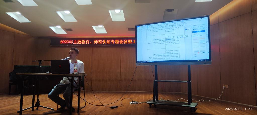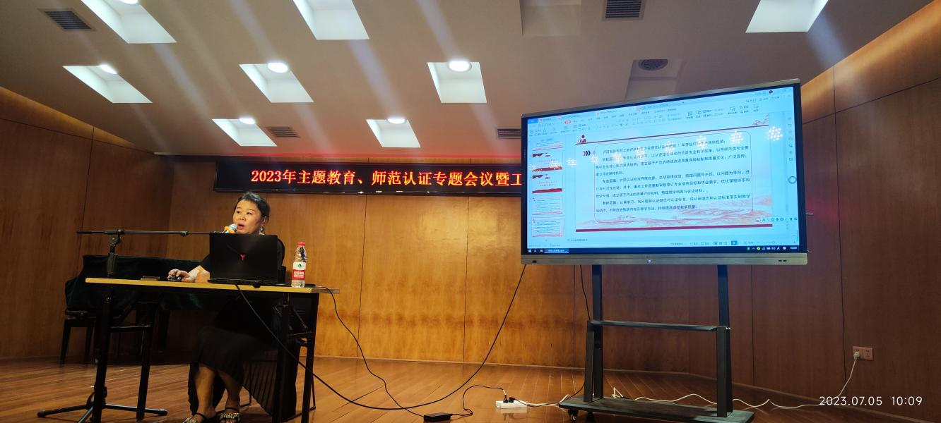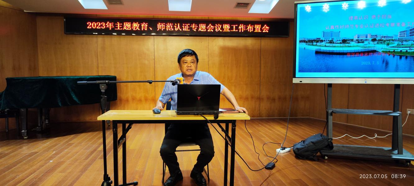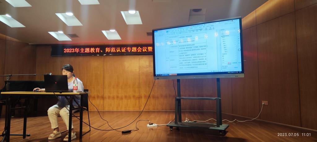 7月5日上午,公司在音乐楼206举行音乐学专业师范认证专题会,集团教学质量监控与评估中心主任曾革、曹蕙姿副经理、孙院副经理等分别就师范认证的意义、主要程序、指标体系和认证要求进行了详细讲解。会议由周勇经理主持,全院教职员工参加会议。