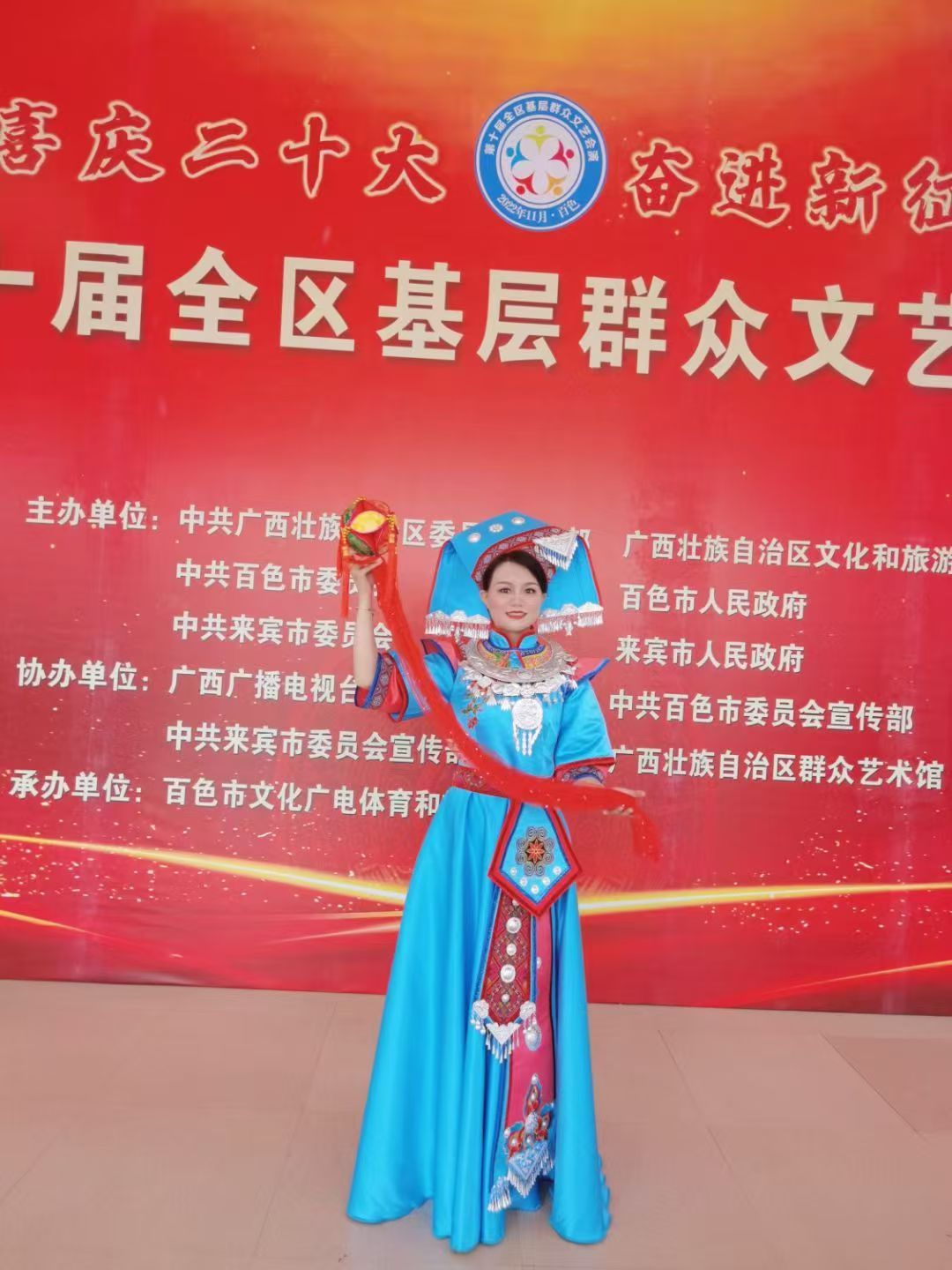 2023年,来宾市兴宾区“戏曲进乡村”文化惠民活动在各乡镇火热开展。作为深耕少数民族音乐文化的传播者、资深文艺志愿者,韦慧以饱满的热情全程参与其中,将戏曲艺术与本土民族文化相融合,走过兴宾区12个乡镇28个行政村,用唱腔、身段与坚守,为乡村群众送去30余场精彩演出,让传统戏曲在田间地头焕发新生,用文艺力量浸润乡村振兴之路。