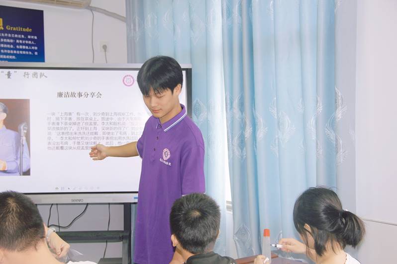 为了将廉洁教育入脑入心,志愿者特别安排了《少年中国说》《少年正气歌》的学唱环节,并一句一句讲解歌曲含义。这些少儿歌曲朗朗上口,适合同学们在理解的基础上传唱。在教学成果汇报演出中,员工们齐声高歌,展现了新时代青少年积极向上的精神风貌,获得了在座家长和乡亲的热烈掌声。