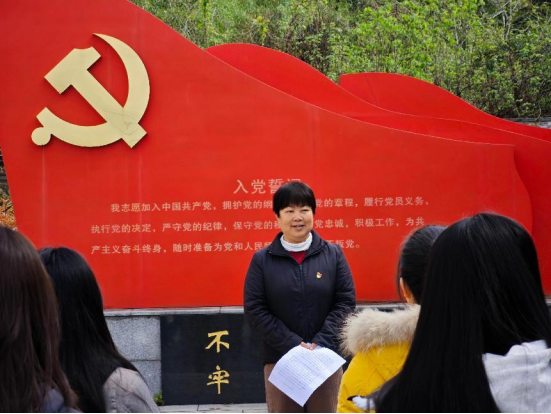讲解结束后,全体党员和入党积极分子在旧址广场整齐列队,神情肃穆。在庄严的国歌声中,入党宣誓大会拉开序幕。党委副书记曾遴琳宣读了批准通知单,新党员们在领誓人的带领下,面对党旗庄严宣誓,他们高举右拳,声音洪亮,表达了对党的忠诚与坚定信念。新党员代表王亚轩、入党积极分子代表李金辉以及党员代表张琴琴依次上台发言。他们分别从自身成长、思想进步和使命担当等方面表达了对党的忠诚与热爱,让在场同学深受鼓舞。