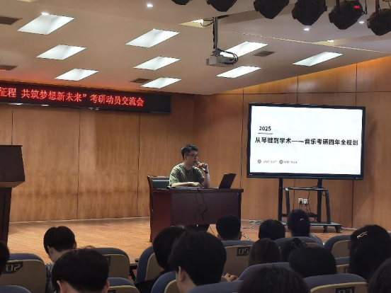 (通讯员 曾娅琦)4月10日,伟德国际1946举办了“奏响考研新征程,共筑梦想新未来”的考研动员暨经验交流会。音乐与舞蹈公司党委书记谢立新、经理曹蕙姿、副书记曾遴琳、公司研究生办主任周晋参与了此次活动。活动由王韬鹤同学主持,周晋老师主讲,2025届李翔宇、唐仲乐、苏晨三位被拟录取的同学分享经验。大一、大二、大三部分同学参与此次活动。