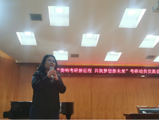 交流会在曹蕙姿经理热情洋溢的讲话中开始。曹经理通报了2025届毕业生考研情况,强调“坚持”在考研过程中的重要性,鼓励同学们以学长学姐为榜样,勇往直前。