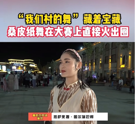 演出结束后,现场掌声雷动,观众们纷纷表示被舞蹈中蕴含的文化内涵和爱情故事所打动。凭借在比赛中的出色表现,她们的表演荣获一等奖并进入决赛。县电视台记者对该同学进行了采访,询问其参与非遗传承活动的感受。热斯来提・图荪巴柯同学表示,能将家乡这独特的文化以舞蹈形式展现,感到十分自豪,也希望通过自己的行动,带动更多年轻人关注并传承非遗文化。