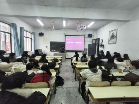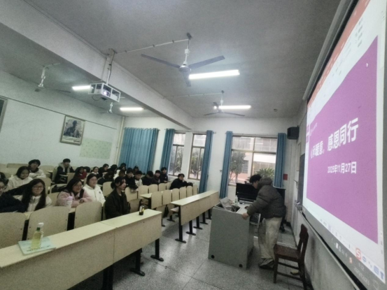 在随后的互动环节中,同学们围坐一圈,踊跃分享身边的感恩故事。有人回忆起专业老师在课后耐心指导、不断鼓励的点滴;有人提及生病时室友轮流照顾、送饭送药的温暖情节;还有同学感谢班级在集体活动中展现出的团结与包容。没有华丽的辞藻,却在朴素的叙述中流淌着同窗之情、师生之谊,使简单的教室洋溢着浓浓的暖意。